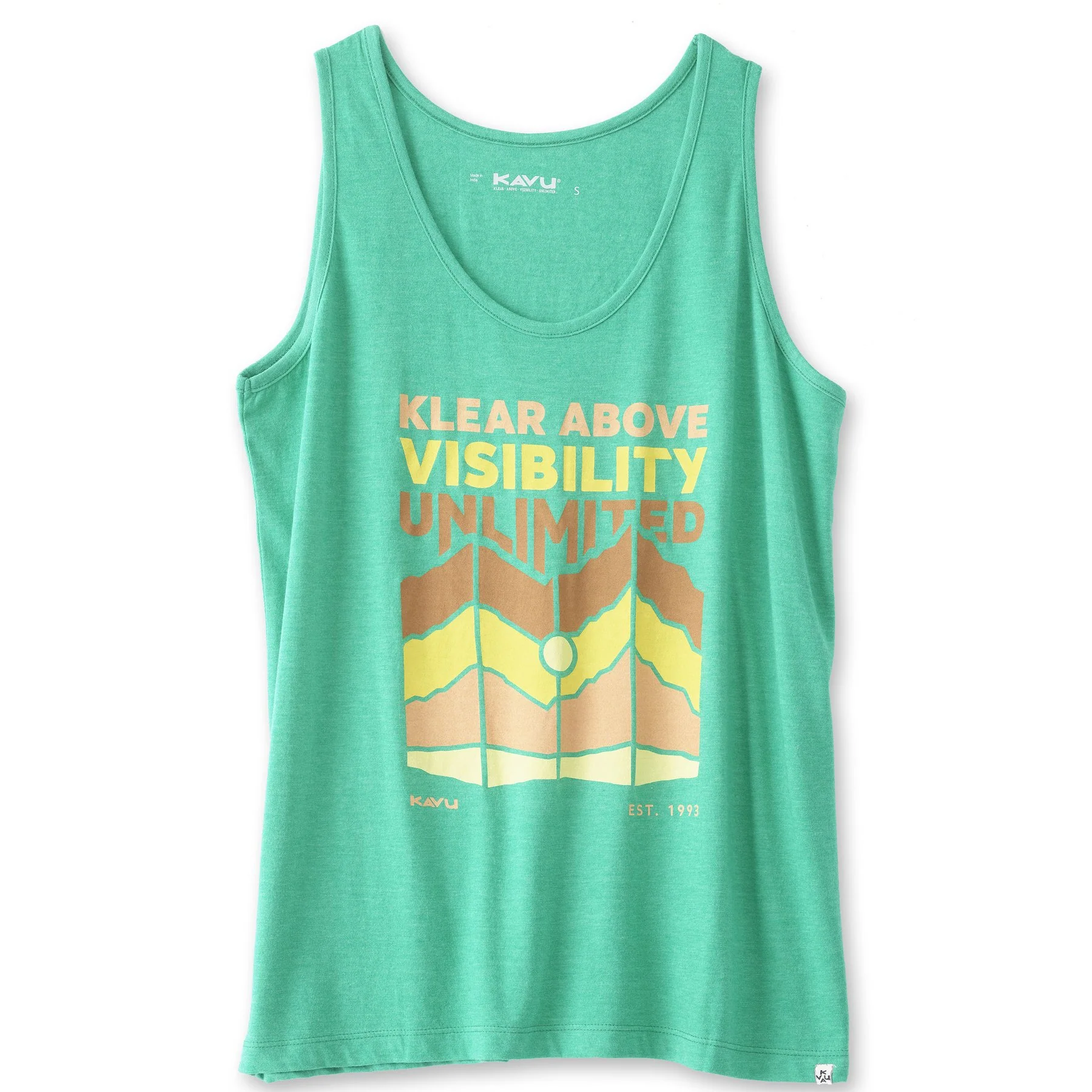 This semi-fitted women's tank top features a fetching scoop neck and a KAVU logo print on the centre front of the shirt.